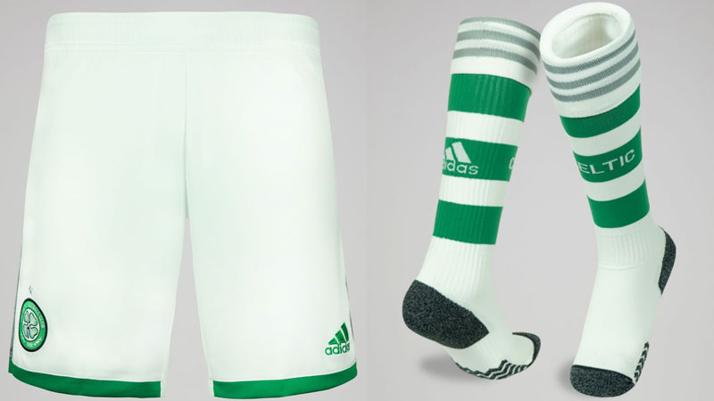 パンツはホワイトでシンプルに。ソックスはセルティックらしいグリーンとホワイトのフープ柄を採用。