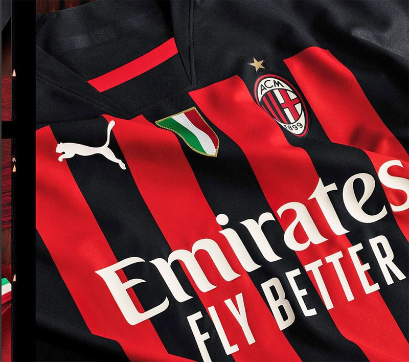ミランは21-22シーズンのセリエAを優勝して19回目のスクデットを獲得。新ユニフォームの胸中央には、王者の証となるスクデットワッペンを装着する。袖のイタリア国旗カラーも王者に相応しいデザインだ。
