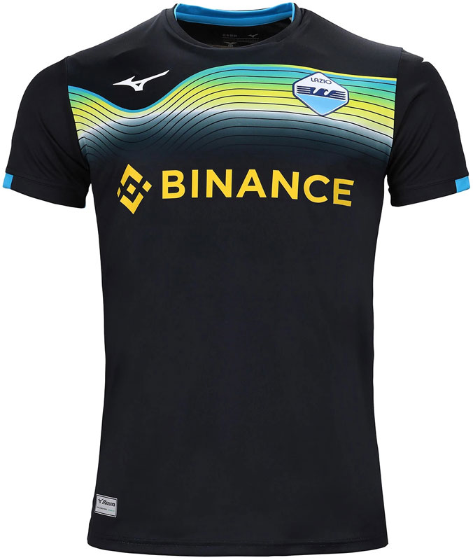 比較的オーソドックスなデザインのホームキットに比べ、ブラックを基調としたアウェイは胸のグラフィックがインパクトを放つ。「BINANCE」のロゴマークは胸のグラフィックに合わせてイエローに変更。
