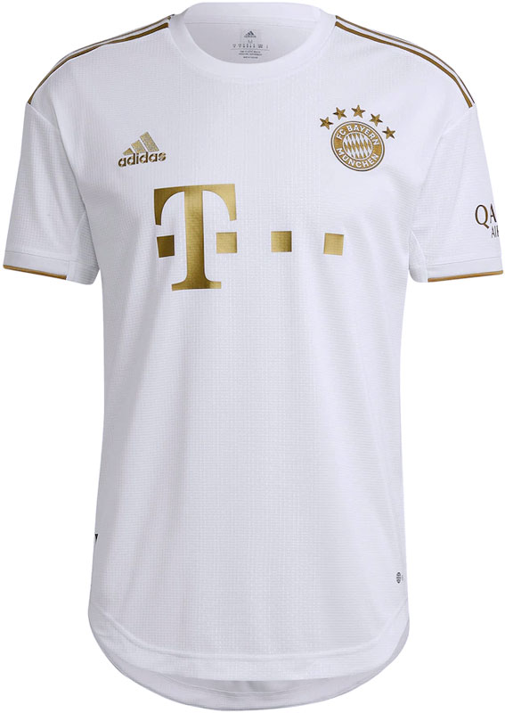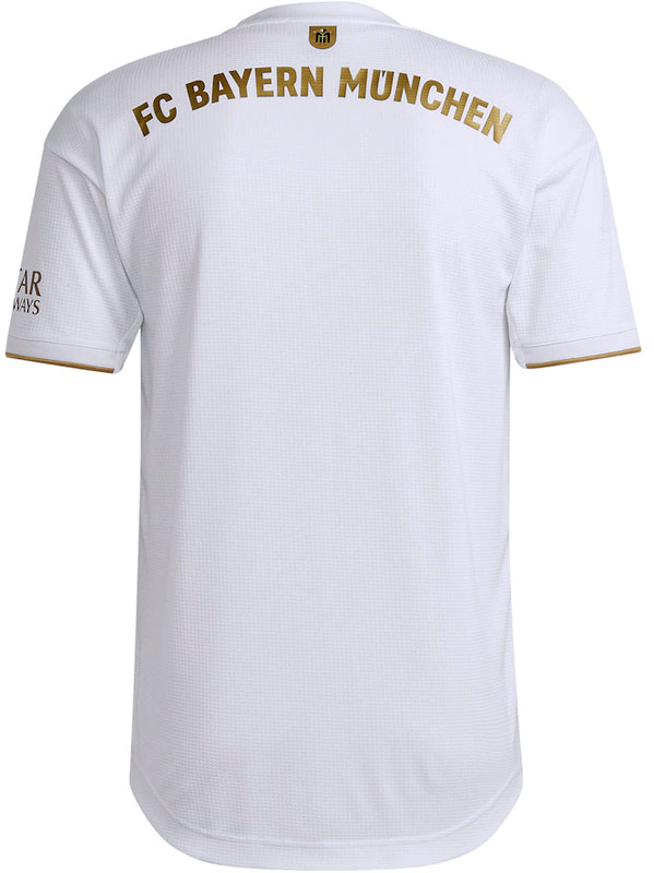 22-23アウェイユニフォームは、クラブ史上初となるホワイト×ゴールドのカラーコンビネーション。ホワイトを基調にスポンサーロゴマークなど各部をゴールドで彩り、スタイリッシュでエレガントなデザインに仕上がっている。