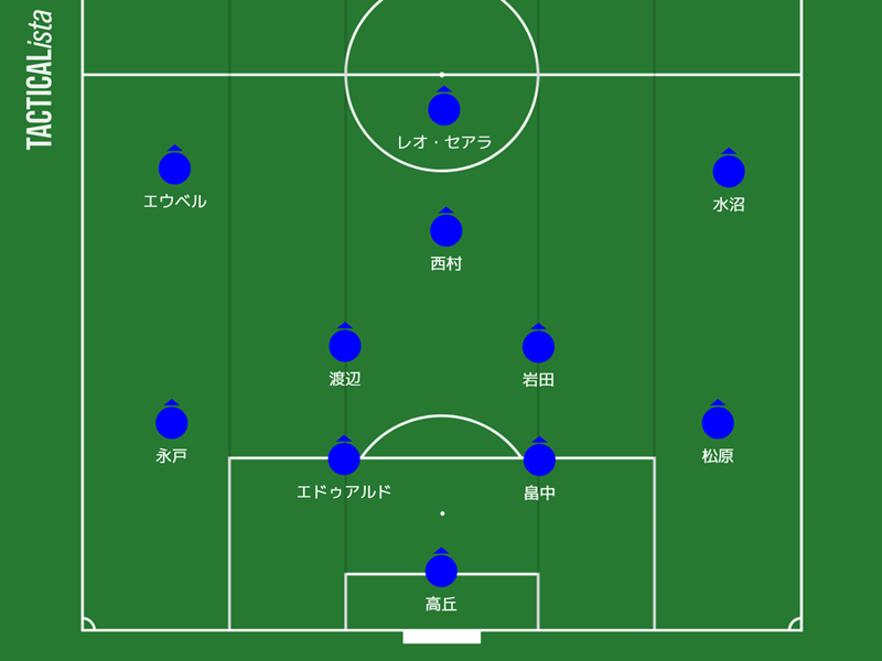 ウイングは右がクロッサーの水沼宏太、左は突破力に優れるエウベルがファーストチョイスで、推進力のあるドリブルが売りの仲川輝人、怪我からの復帰が待たれる宮市亮も存在感を示すセクション。