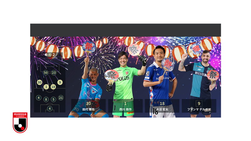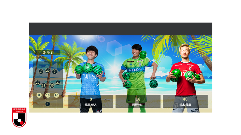 この夏休みバージョンの選手紹介は、8月21日(日)の第26節まで使用されるとのこと。