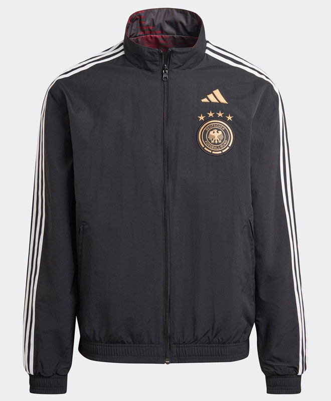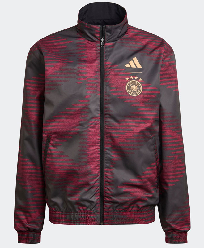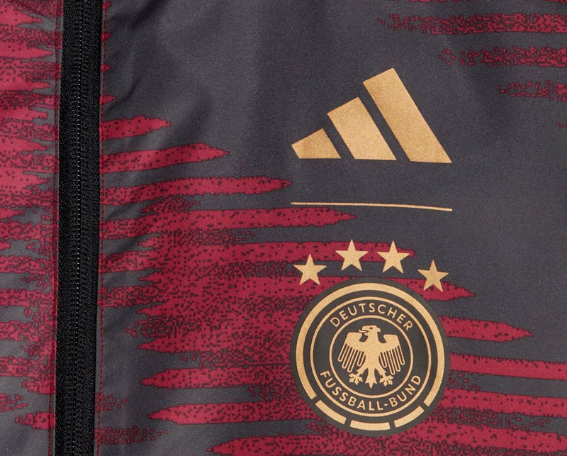 デザイン:メインはホームユニフォームのストライプを彩るブラック。もう片面はドイツ語での国名“Deutschland”の頭文字「D」をダイナミックに描いたアウェイユニフォームのグラフィック。