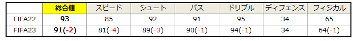 ゲーム内で最も高い能力に設定されている23人の選手が判明した。