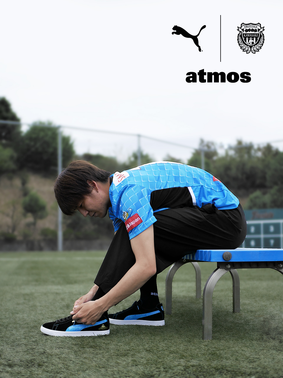 シュータンにはフロンターレのロゴ入りの特別な織ネームが採用され、インソールには、川崎フロンターレ、atmos、PUMAのロゴがプリントされた、クラブ設立26(フロ)周年のアニバーサリーイヤーを記念するにふさわしいこだわりの1足に仕上がっています。」
