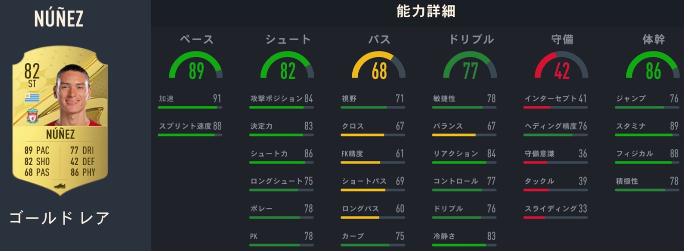 能力的にはハーランドのほうが6ポイント上。23歳のヌニェスには今後の適応と活躍に期待したい。