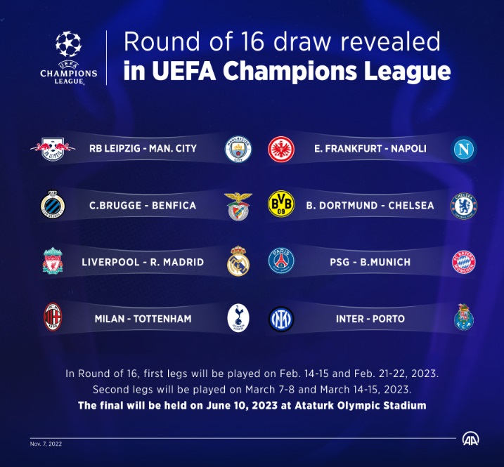 UEFAチャンピオンズリーグの決勝トーナメントの組み合わせ抽選が行われ、対戦カードが決まった。