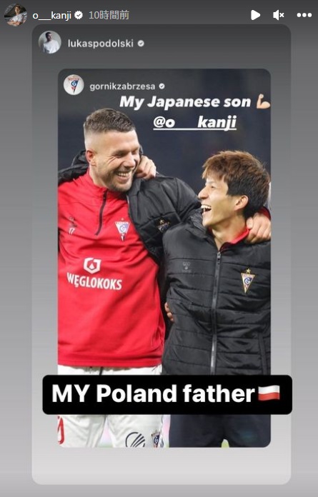 この試合ではチームメイトである奥抜侃志(おくぬき かんじ)も得点を決めており、1-4の勝利に貢献している。試合後、ポドルスキは「我が日本人の息子」と奥抜との笑顔の2ショットをSNSにポスト。