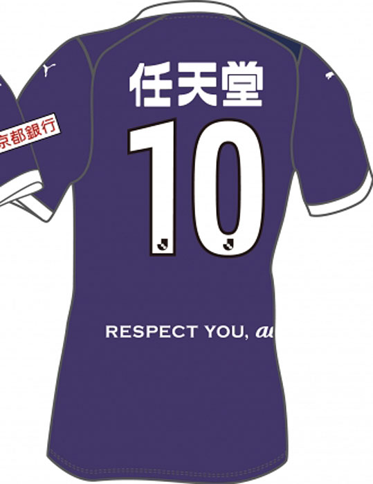 前面はエンブレムに描いている鳳凰を大胆に配置し、京都の街並を思わせる半々の2トーンで構成。シンプルかつクリーンなルックスがピッチ上の選手たちを輝かせる。