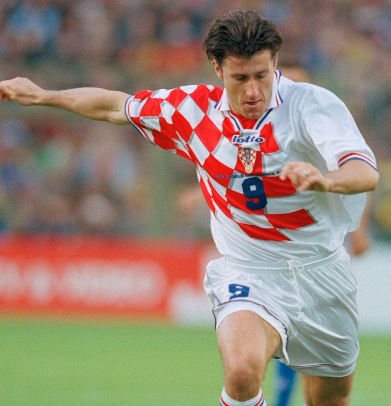 ワールドカップ初出場にして3位となった1998フランス大会でのユニフォーム。市松模様のフラッグが風に揺れるようなデザインは大変印象的で、大会を象徴する一着でもある。このユニを着てグループステージ第2節で同じく初出場の日本代表と対戦し、シュケルのゴールで勝利した。
