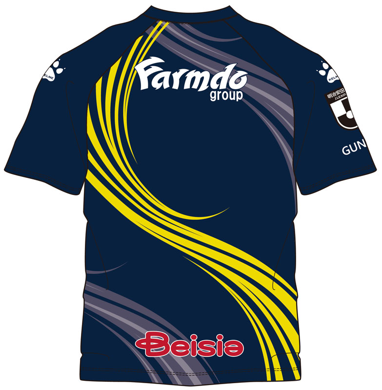 今回のデザインは群馬名物の「からっ風と雷」をモチーフに、チームの堅守速攻を体現するようなデザイン。伝統のネイビーを身にまとい、より鋭く流動的にピッチを支配する姿をイメージしている。