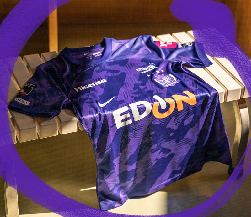 2023新ホームユニフォームは、広島バイオレットを基調にしたカラーコンビネーションを継承し、過去のグラフィックを融合させたハイブリッドなデザインで「力強いサンフレッチェ」を表現。