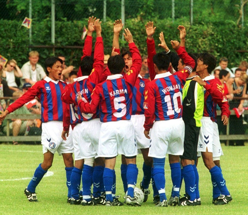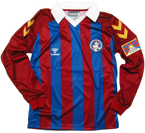 hummelは中国からの政治的圧力を受けながらも代表チームとして活動していたチベットと契約。レッドとブルーのストライプデザインは、左袖にも装着しているチベット国旗(雪山獅子旗)をモチーフとしている。