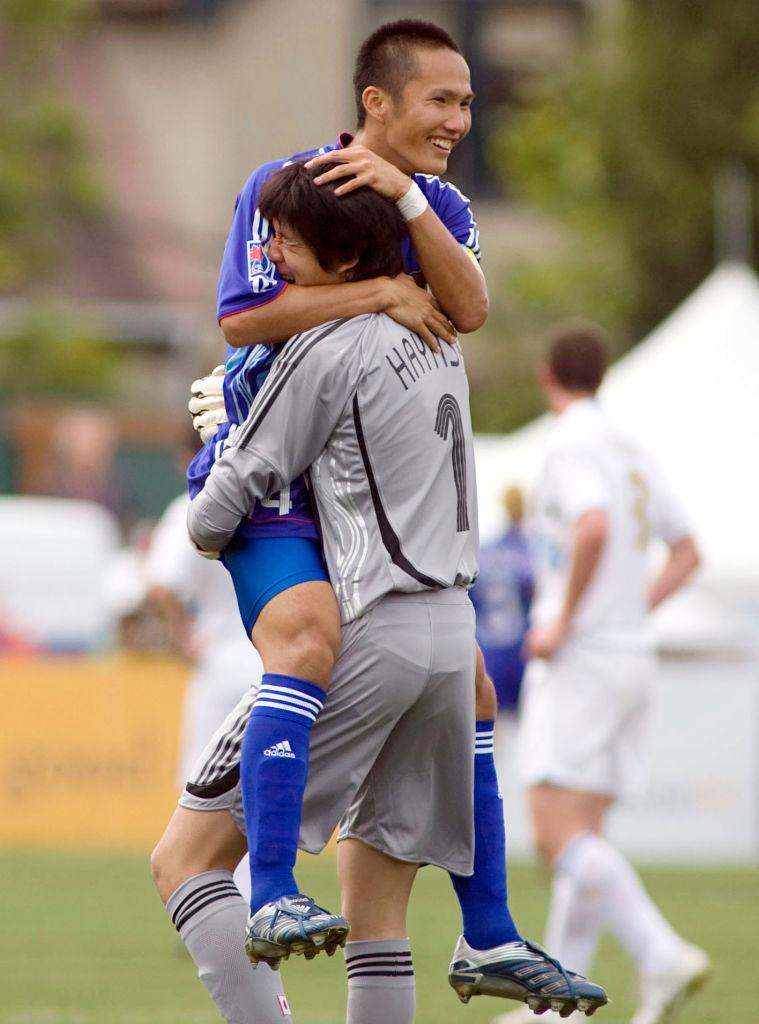 Fドカップでは正守護神を務めた林彰洋。当時はまだ流通経済大学の学生であった。3試合でプレーし、ラウンド16のチェコ戦ではPK戦で敗れるという悔しい結末を経験することに…。ちなみに抱き合っているのはこのチームの主将であった福元洋平だ。