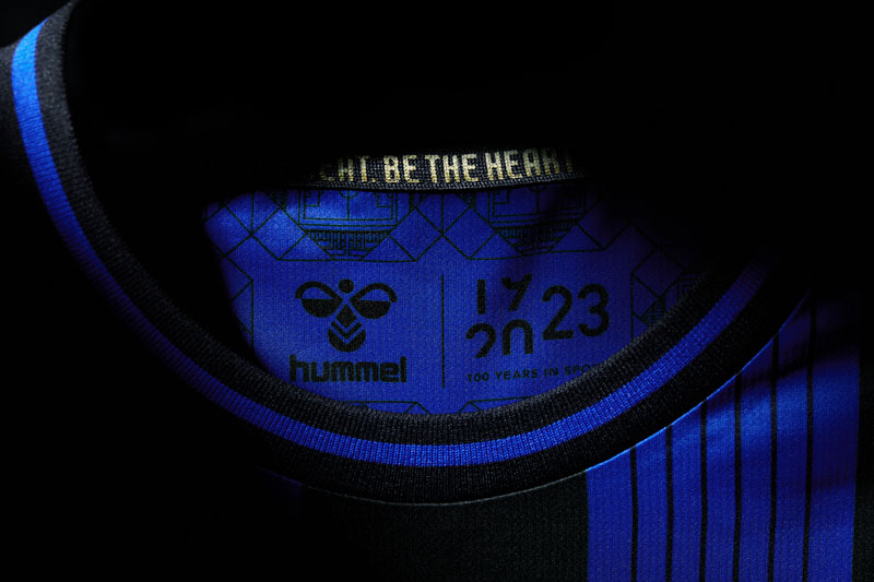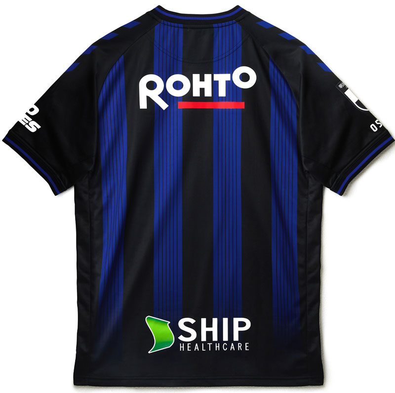 襟部にはクラブのテーマである「BE THE HEAT, BE THE HEART」、そしてパナソニックスタジアム吹田のイラストとhummelの100周年ロゴを配置。1923年に世界初のスタッド付きサッカースパイクを開発して誕生したhummelが、ガンバ大阪と共に次の100年へのスタートを切り、情熱を共に燃やす宣言を表現したという。