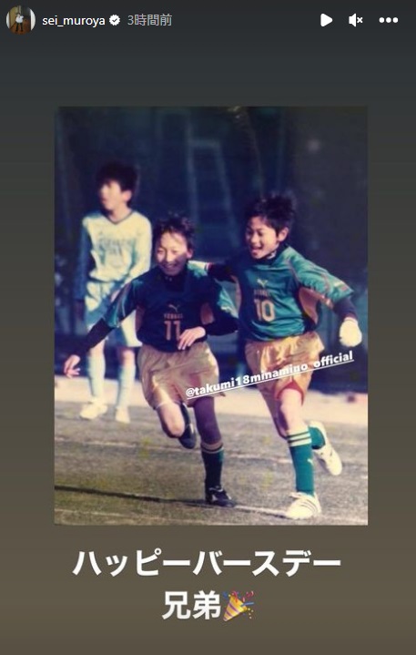 久保建英は「拓実くん、お誕生日おめでとうございます!」として遠藤航との3ショットを公開。そのうえで、「(中央にいる)航くんの誕生日みたいになってる」とも綴っていた。