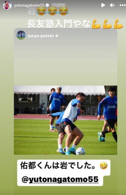 「佑都くんは岩でした…」という鈴木に長友は「岩(笑)長友塾入門やな」、「お互い成長するぞ!」と返信。鈴木も「はい、頑張りましょう」と答えていた。
