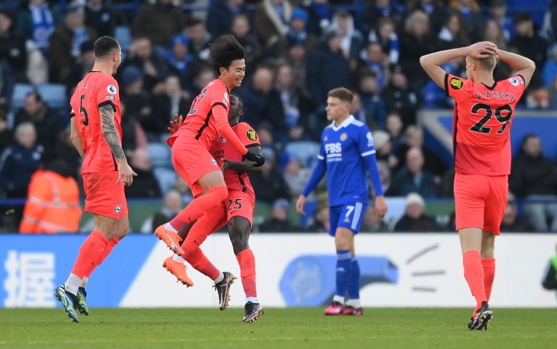 三笘は倒れたカイセドに心配そうに駆け寄るも、周りの選手は思わず笑ってしまっていた。