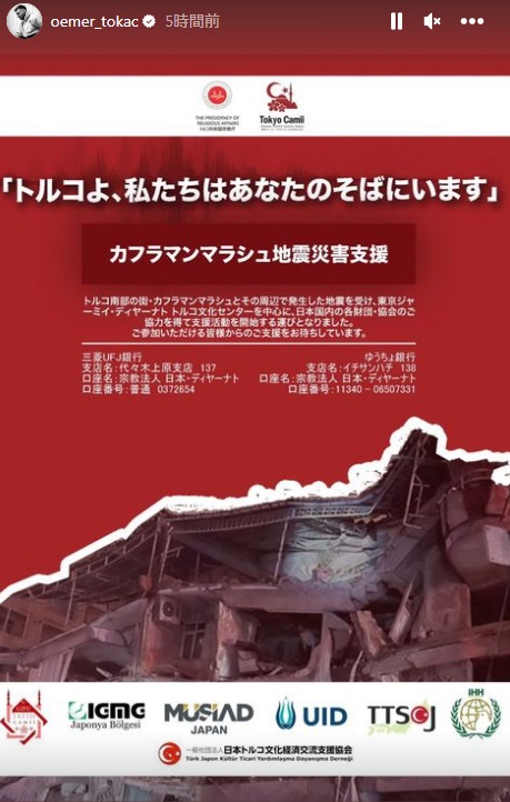 — Tokyo Camii & Diyanet Turkish Cul. Ctr - 東京ジャーミイ (@tokyocamii) February 6, 2023