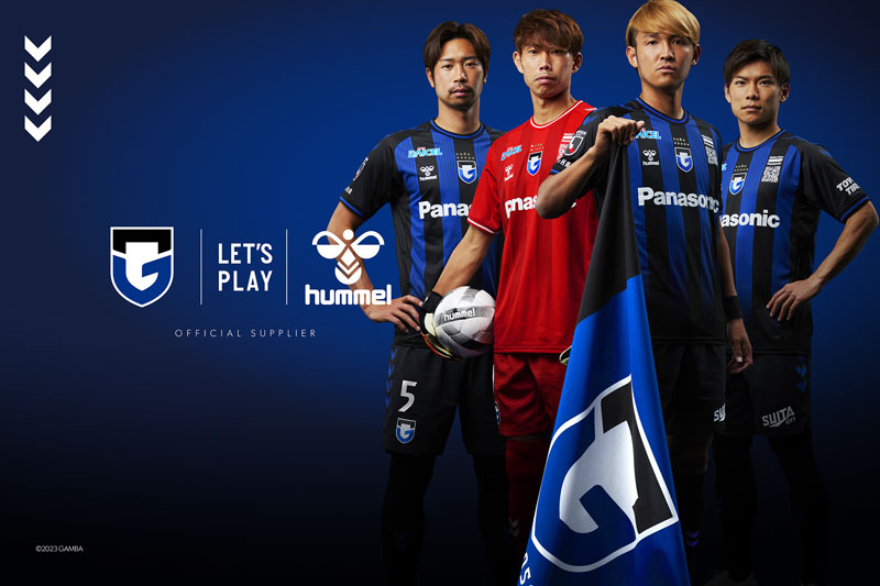 新たにhummelがサプライヤーとなった2023ユニフォーム。伝統の“青黒のストライプ”を継承し、「青と黒の誇り」「青と黒の戦士」でガンバ大阪そのものを表現した。