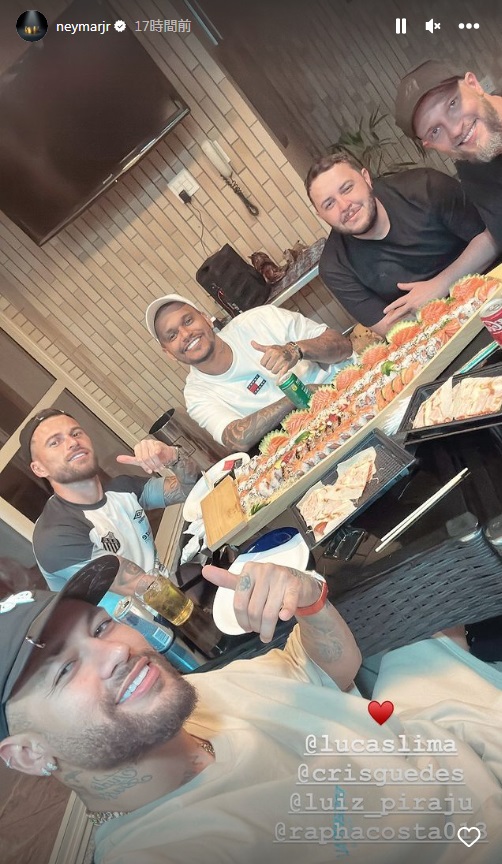 サントスMFルーカス・リマからサントスのユニフォームをプレゼントされていたが、そのリマら友人たちと寿司パーティーをしていたぞ!