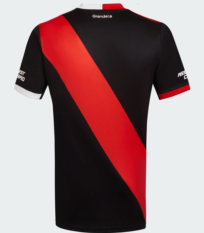 2023-24新サードユニフォームはブラックを基調に、リーベルのユニではお馴染みの斜めストライプ(タスキ)をレッドで彩るデザイン。90年代や2000年代のリーベルを知る人が見れば瞬時に懐かしさを覚えるに違いない。