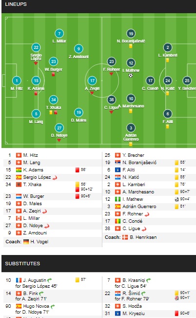 7日に行われたチューリッヒ戦に0-2で敗れたのだが、終盤に両チーム合わせ4人の退場者が出るなど荒れ模様の一戦となった(以下画像はSoccerwayから)。