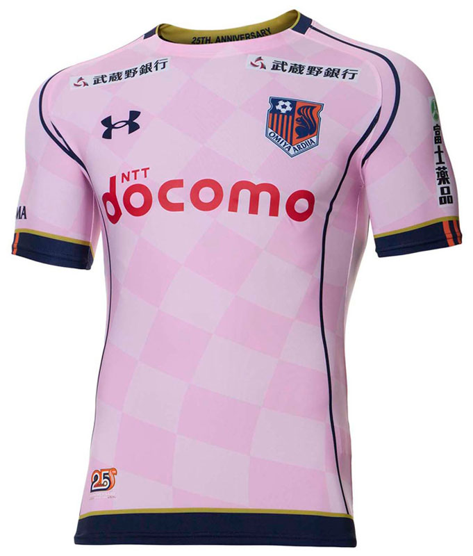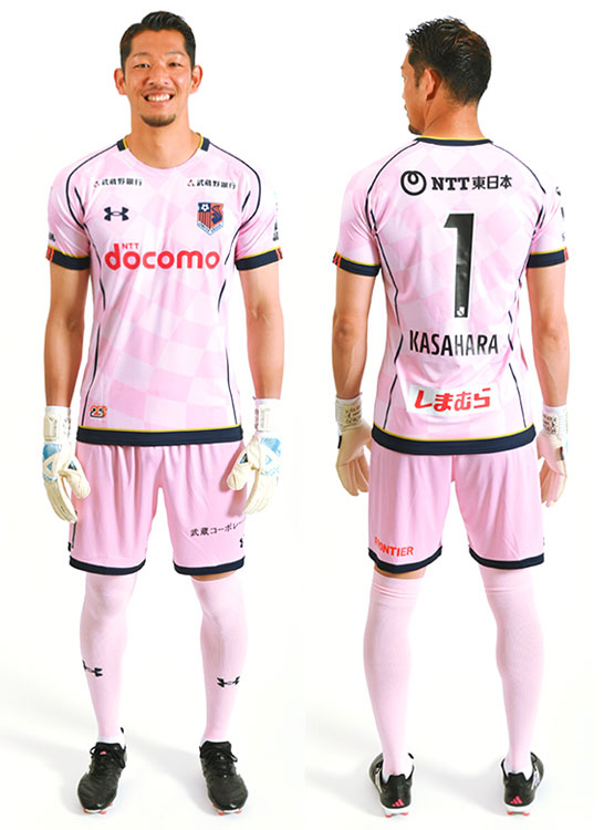 25周年記念ユニフォームにはGKモデルも登場。ピンクを基調にFP用と同じく原点回帰のブロックデザインを採用し、前面に創立25周年記念ロゴを付ける。