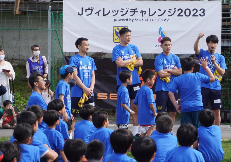 ベルギー1部シント=トロイデンが21日、福島県双葉郡楢葉町(ならはまち)のJヴィレッジで、選手と小学生がサッカー指導を通じて交流するイベント「Jヴィレッジチャレンジ2023」を開催。