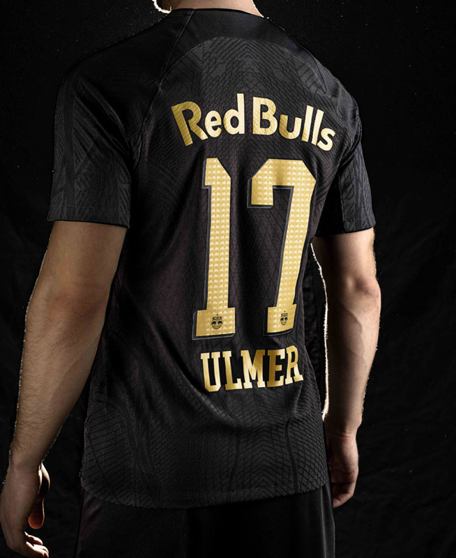 今季のリーグ戦を優勝し、2013-14シーズンから10連覇を達成したザルツブルク。それを記念した特別ユニフォームはブラックを基調とし、エンブレムやメーカーロゴなどを全てゴールドで彩った華やかなデザインだ。