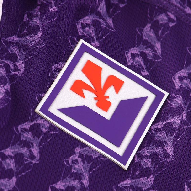 斜めストライプを構成するグラフィックは、ホームタウンのフィレンツェやチームの象徴でありDNAとも言えるユリの花を描いたもの。トーン・オブ・トーンのスタイルでホームキットを華やかに飾る。