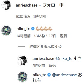 髙橋仁胡はこの投稿に力こぶの絵文字でコメント。