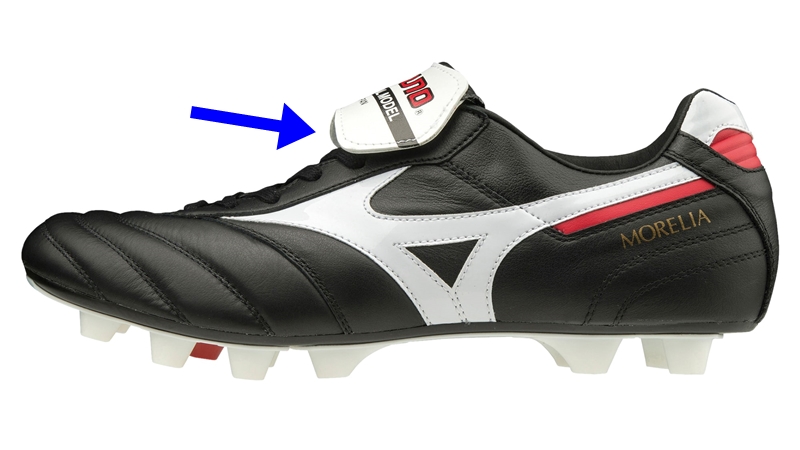 それまで、このマジックテープ(※画像矢印の箇所に付いている)はありませんでした。僕が『ベロを折った時に離れないようにしてほしい』とミズノの方に伝えたんです」