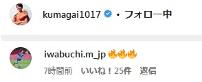 この投稿に盟友である岩渕は炎の絵文字でエールを送っていたぞ。