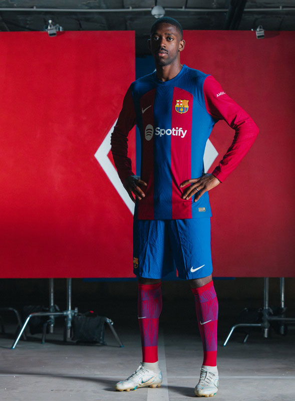 23-24新ユニフォームはシンプルなブラウグラナ(青と臙脂)という、クラブの基本に立ち戻ったようなデザイン。胸スポンサーは音楽ストリーミングサービスの「Spotify」で継続するが、ロゴの色はホワイトに変更となった。