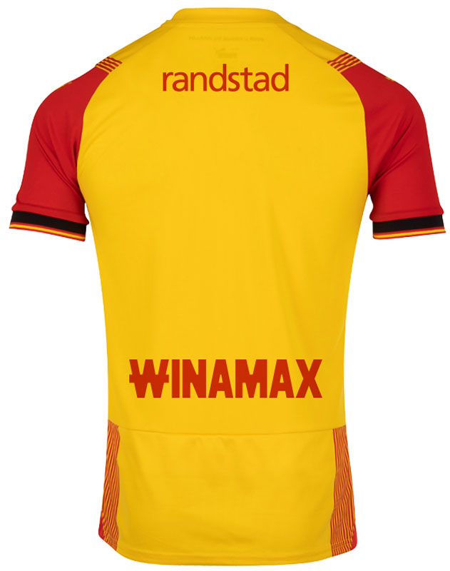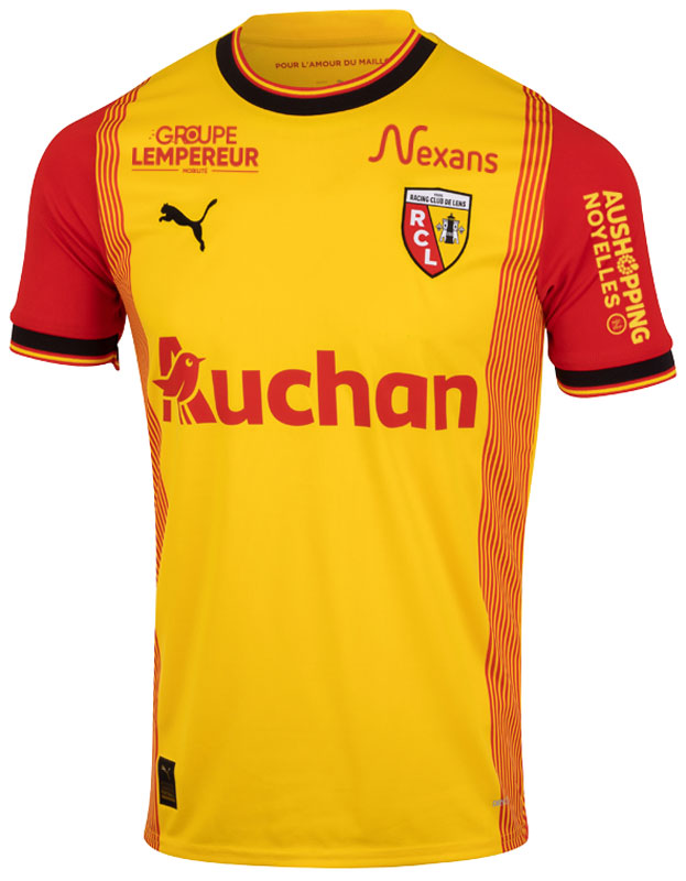 23-24新ホームユニフォームは、イエローを主体にレッドのストライプを脇にあしらったデザインで、袖もレッドで塗りつぶす。ランスの愛称「血と黄金」そのものである伝統的なカラーリングを継承している。