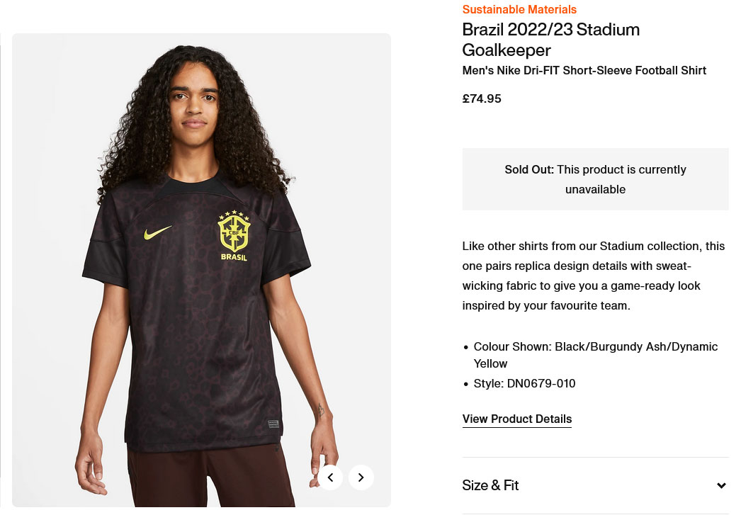 この黒いGKユニはカタールW杯の準々決勝クロアチア戦でアリソンが着用。大会ではこの1試合のみ使用だった。