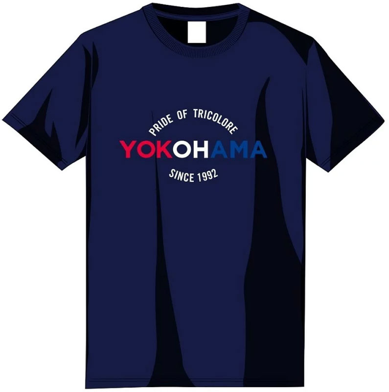 ネイビーを基調にチームカラーのトリコロールでYOKOHAMAをプリントしたオシャレなTシャツ。