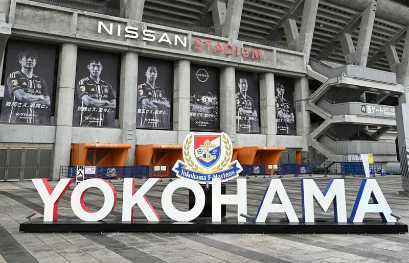 2023年4月8日の横浜FC戦から日産スタジアムのホームゲーム時に、西ゲート前広場に設置されている「YOKOHAMAモニュメント」。試合開催日には人気の撮影スポットとなっているこのモニュメントをモチーフにしたグッズが24日から発売になる。