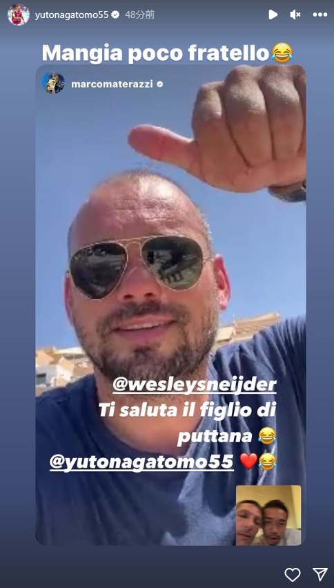 また、2人は同じくインテル時代のチームメイトであるヴェスリー・スナイデルともビデオ通話をしていたようだ。