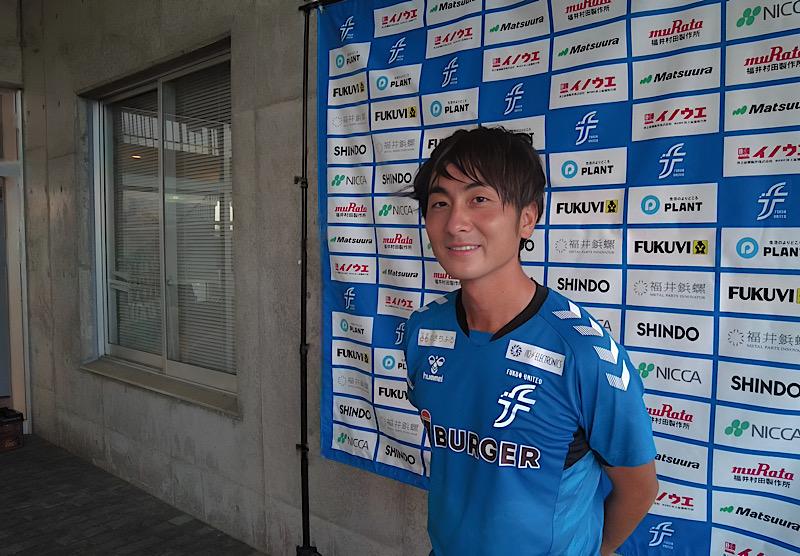 ジュビロ磐田の下部組織で育ったあと桃山学院大学に進み、2015年にV・ファーレン長崎でJリーグにデビュー。その後藤枝MYFCとヴェロスクロノス都農を経て昨年福井ユナイテッドへとやってきた。