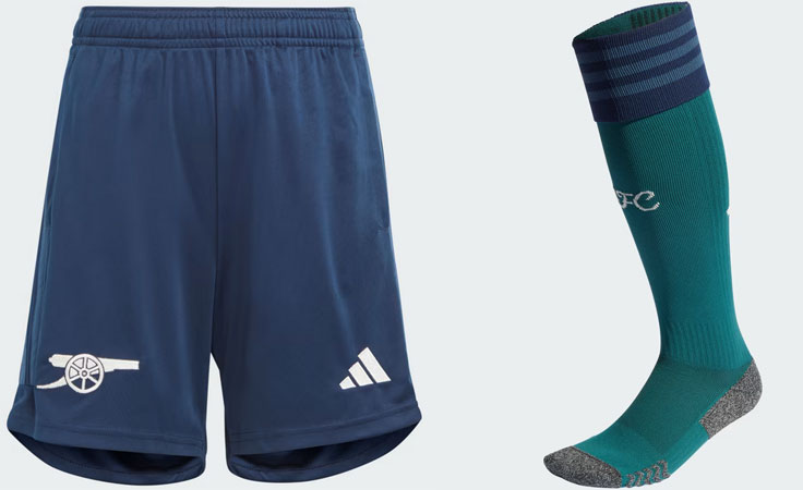 23-24新サードユニフォームは、深みのあるグリーンを基調にネイビーを組み合せた2カラーのデザイン。アーセナルのユニフォームに詳しい方なら、見た瞬間に80年代を感じたかもしれない。