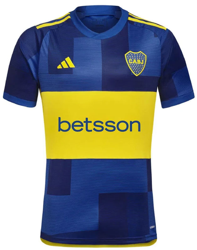 23-24新ホームユニフォームは、幾つかのパターンを組み合せたパッチワークのようなデザインが特徴的。これはホームタウン「ラ・ボカ地区」とのつながりを表現したもの。