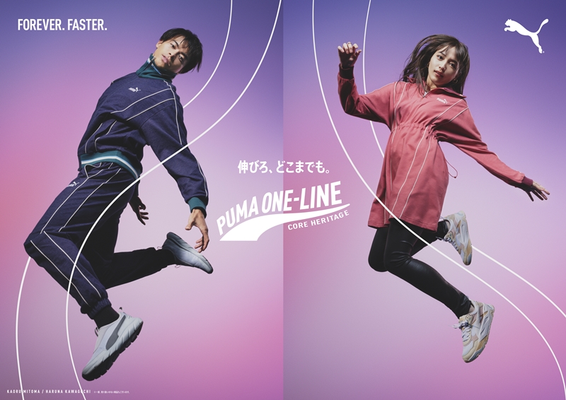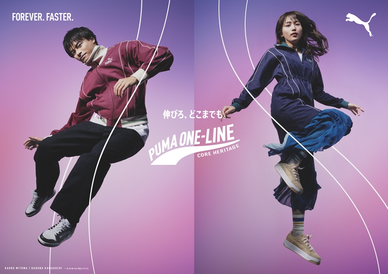 ムービーは、“PUMA ONE-LINE 「伸びろ、どこまでも。」”をコンセプトとし、トランポリンを活用した川口春奈さんと三笘選手が軽やかに宙に浮いているようなポージングとともに、“ONE-LINE”が流れるように伸びていく様を伝える、躍動感溢れる映像となっている。