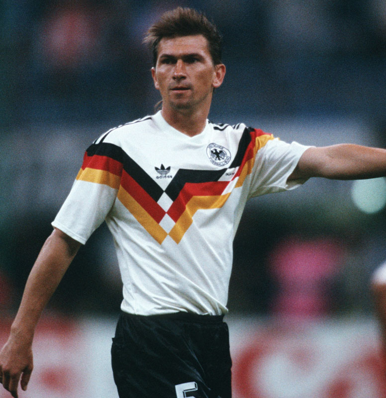 ベスト4入りを果たした1988年の欧州選手権(EURO1988)や、3度目の優勝を成し遂げた1990年イタリアW杯で着用したユニフォーム。胸の3色グラフィックはこの時代のアイコン的な存在となり、数度の復刻版も発売された。