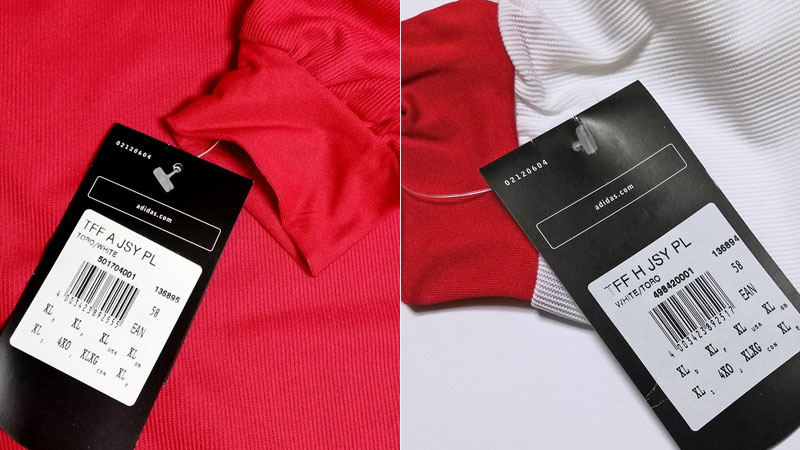 これは選手用ユニフォームに付けられたタグだが、見ての通り白のユニにホームを示す「H」、赤にはアウェイを示す「A」が印字されている。当初はこの予定だったのだ(TFFはトルコサッカー連盟の略称)。