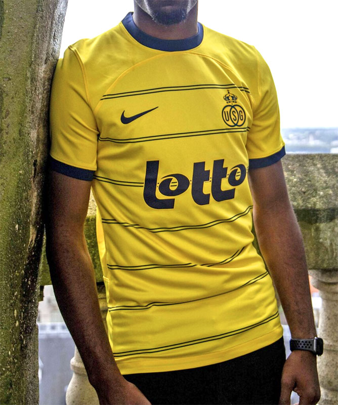 23-24新ホームユニフォームは伝統のイエローを基調とし、ネイビーのピンボーダーを走らせる。胸スポンサーはベルギーの宝くじ公社「Lotto」で継続。スポーツブランドのLottoとは無関係だ。