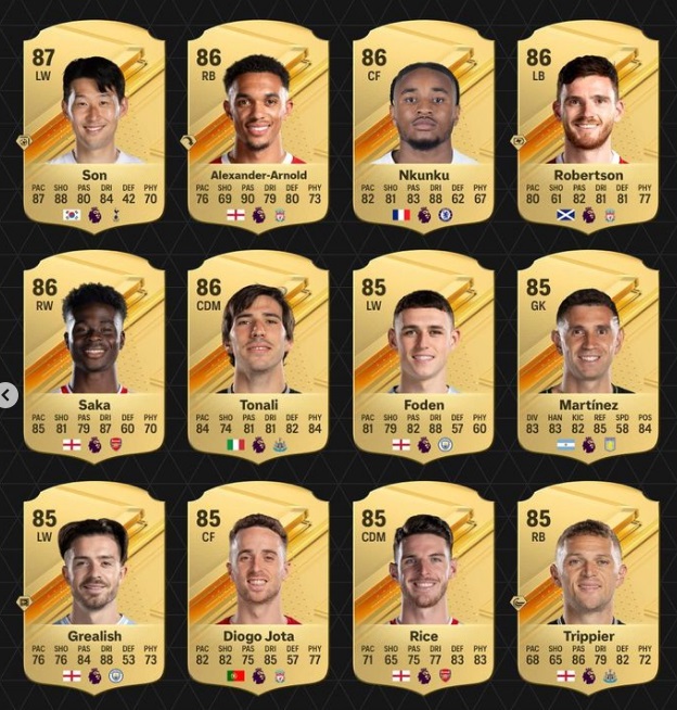 プレミアリーグで最も強い能力になっている選手24名が発表された。