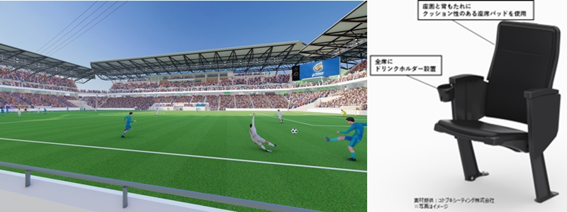 新スタジアムではメインスタンド、バックスタンドだけではなく、両ゴール裏においても最前列はピッチまでの距離日本最短の約5mを実現。