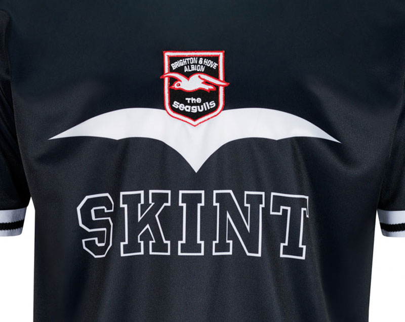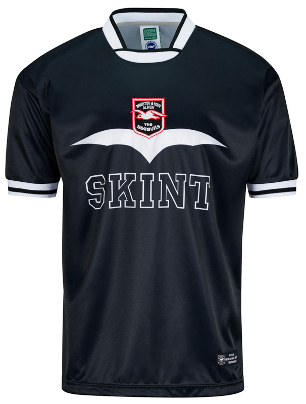 当時のブライトンのユニフォームといえば、胸スポンサー「SKINT」が象徴的。このロゴの存在が現在でも高い人気の理由の一つである。